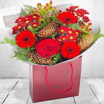 Warm up this Christmas with our beautiful Christmas Classic bouquet. This hand crafted display is hand delivered in warming shades of red and burgundy.