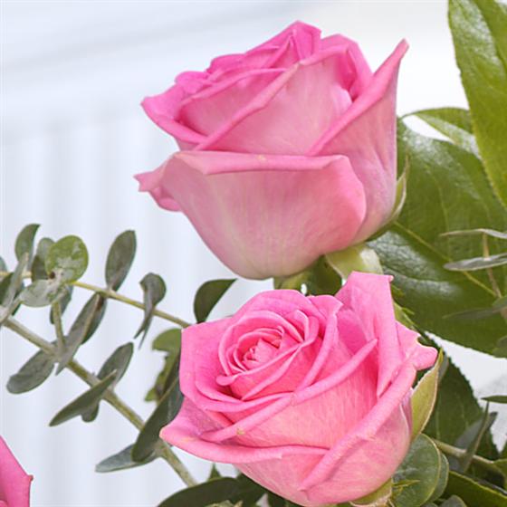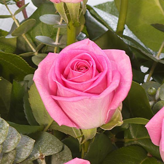What could be more romantic than perfect pink Roses for Valentine's Day? This vase arrangement will warm her heart.